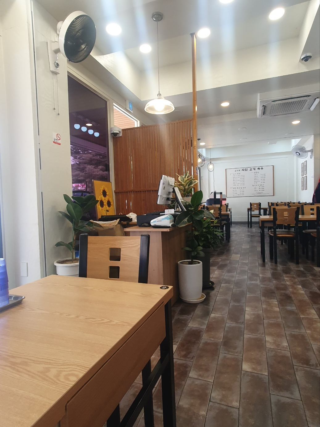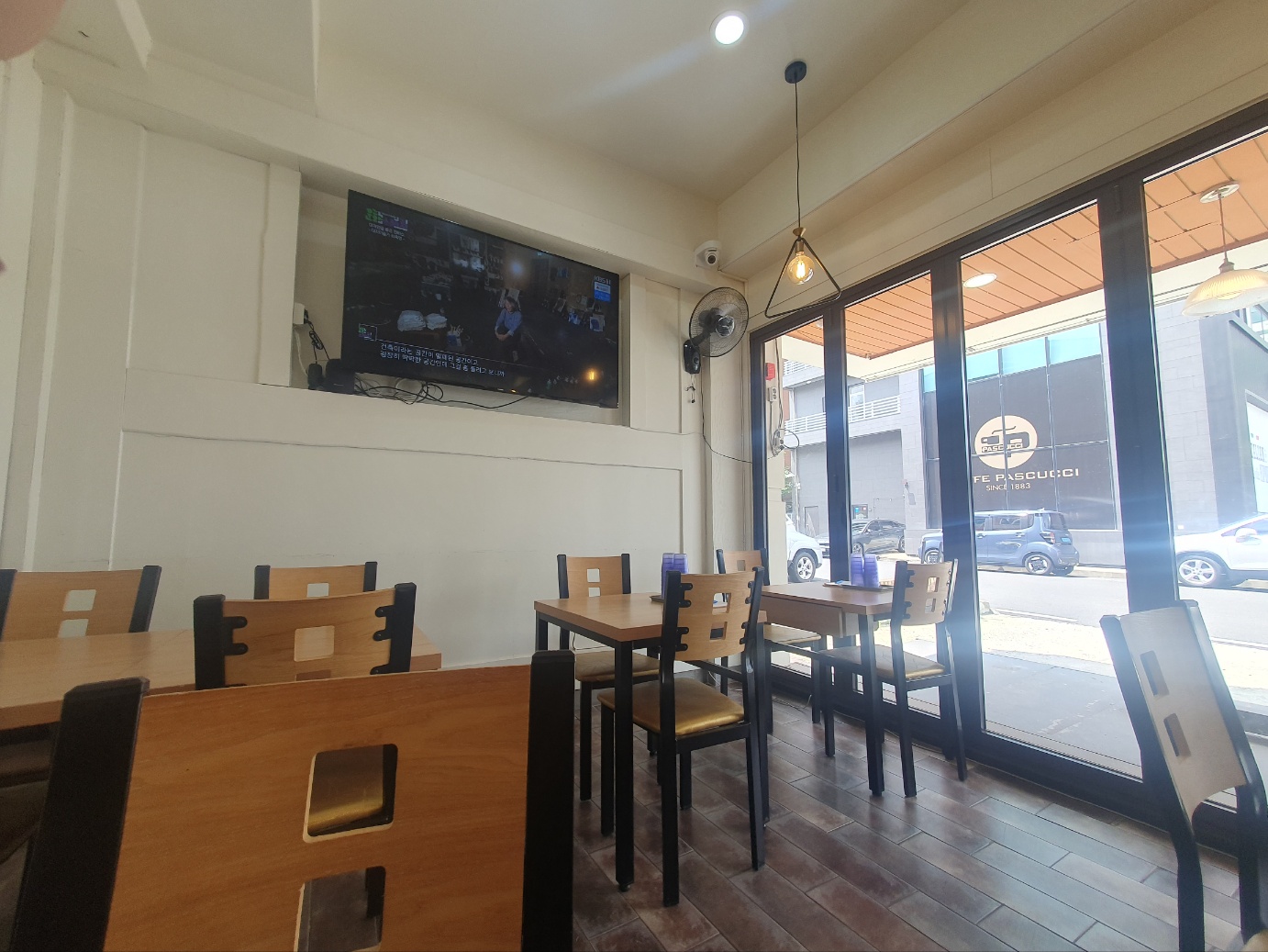 내부는 좁지 않게 배치된 식탁들과 벽면엔 눈에 잘 들어오는 메뉴판이 보입니다.
