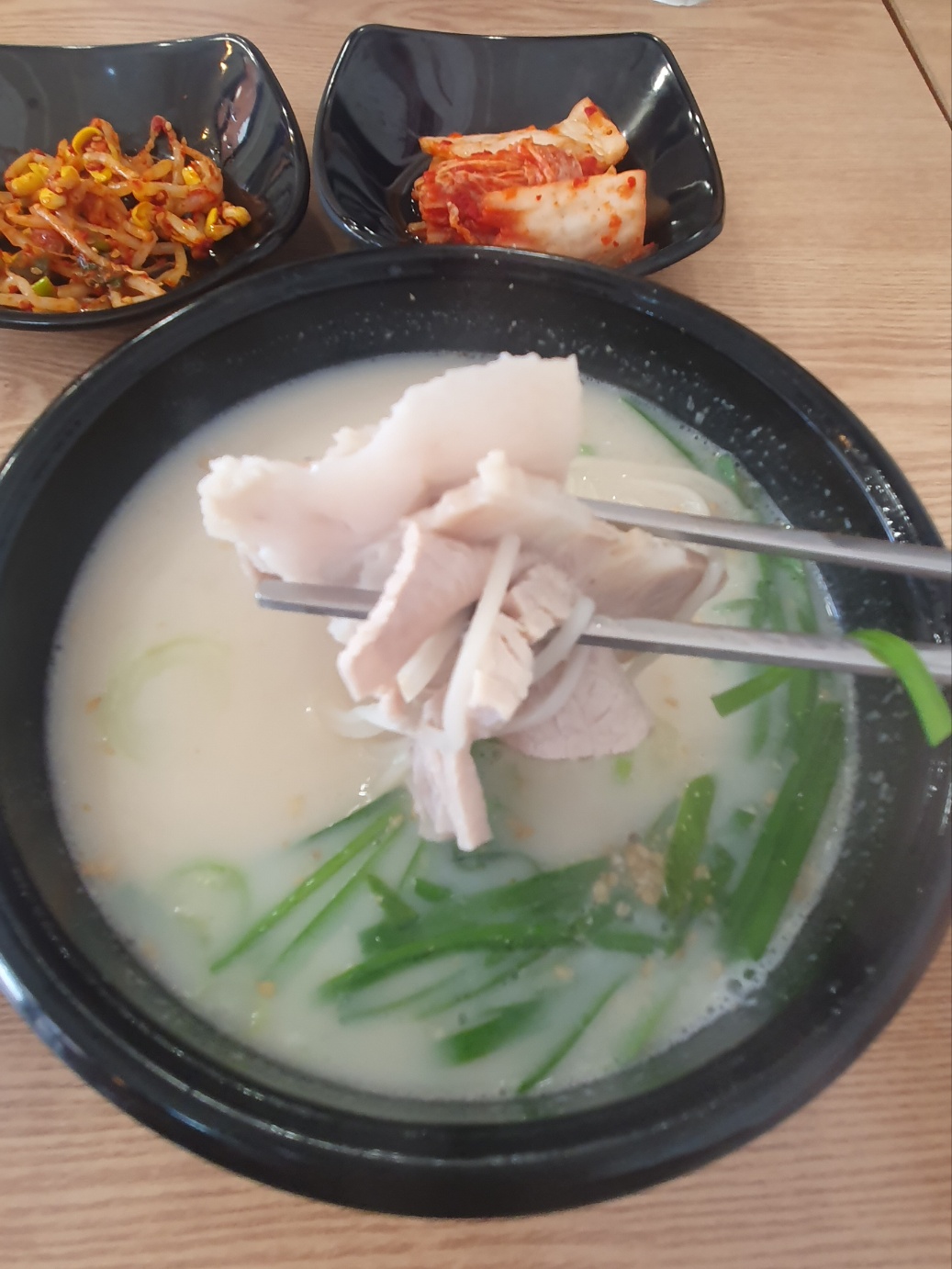 국밥 먼저 한 숟가락 먹어봤는데 맛은 엄청 진한 사리곰탕면?