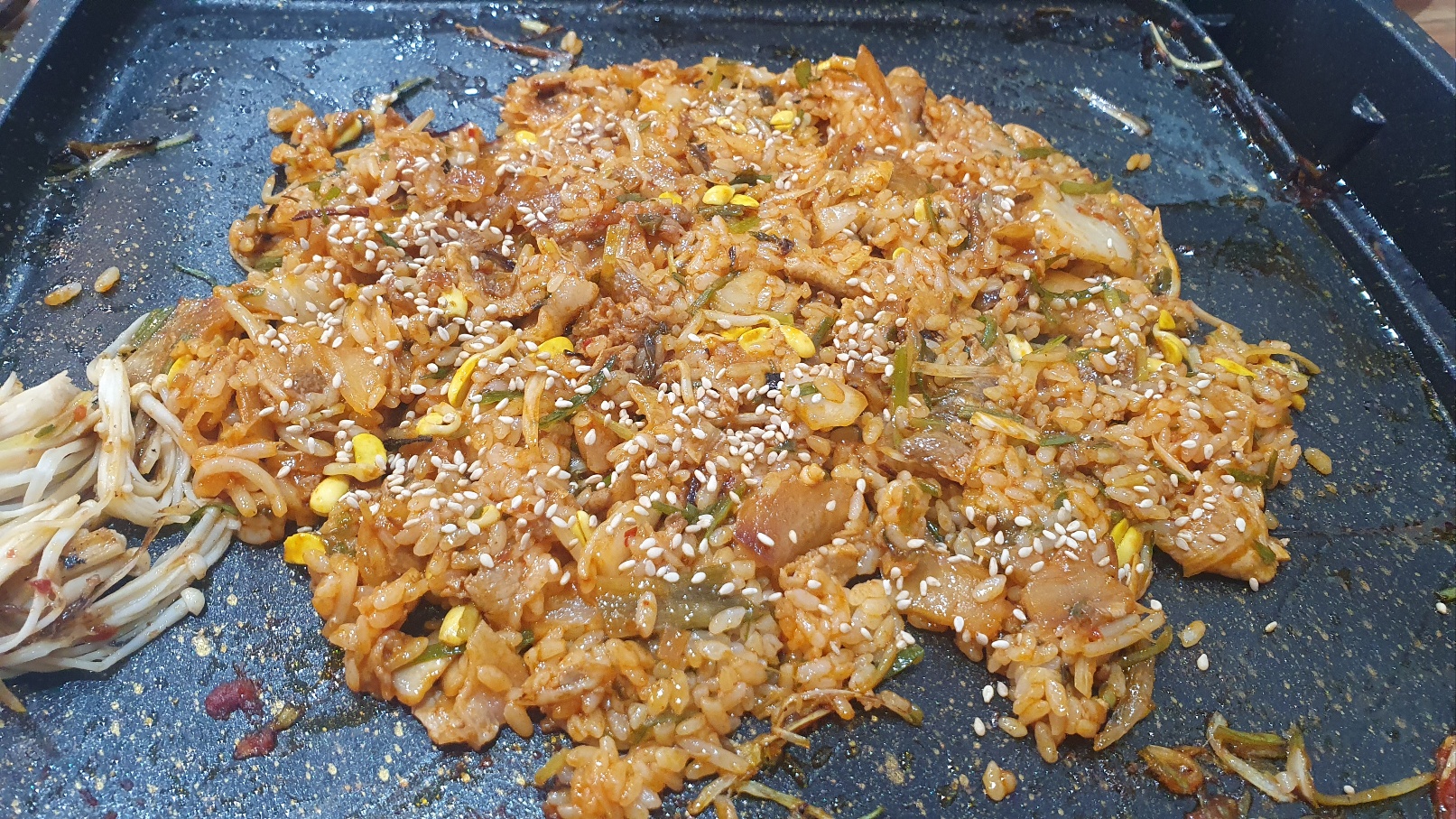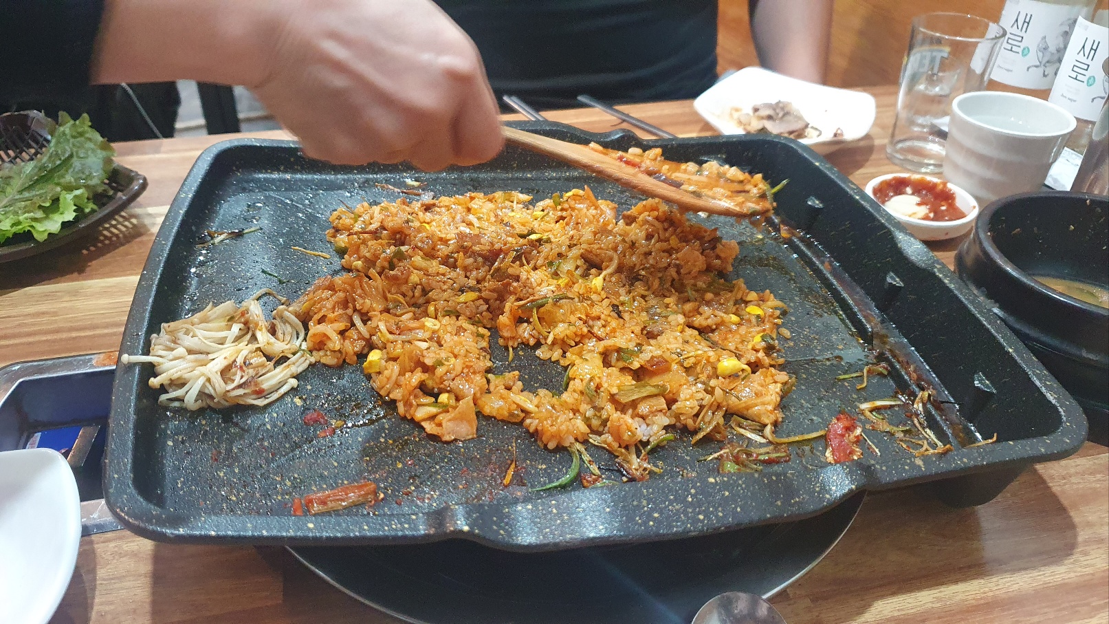 고기를 다 먹지 말고 조금 남겨 놓고 볶음밥을 주문하면 사장님께서 불판 위 고기랑 구운 채소들을 가지고 가셔서 주방에서 볶음밥을 만들어다 주십니다. 그리고 불판 위에 예쁘게 쫙~ 펼쳐놓아 주지요~