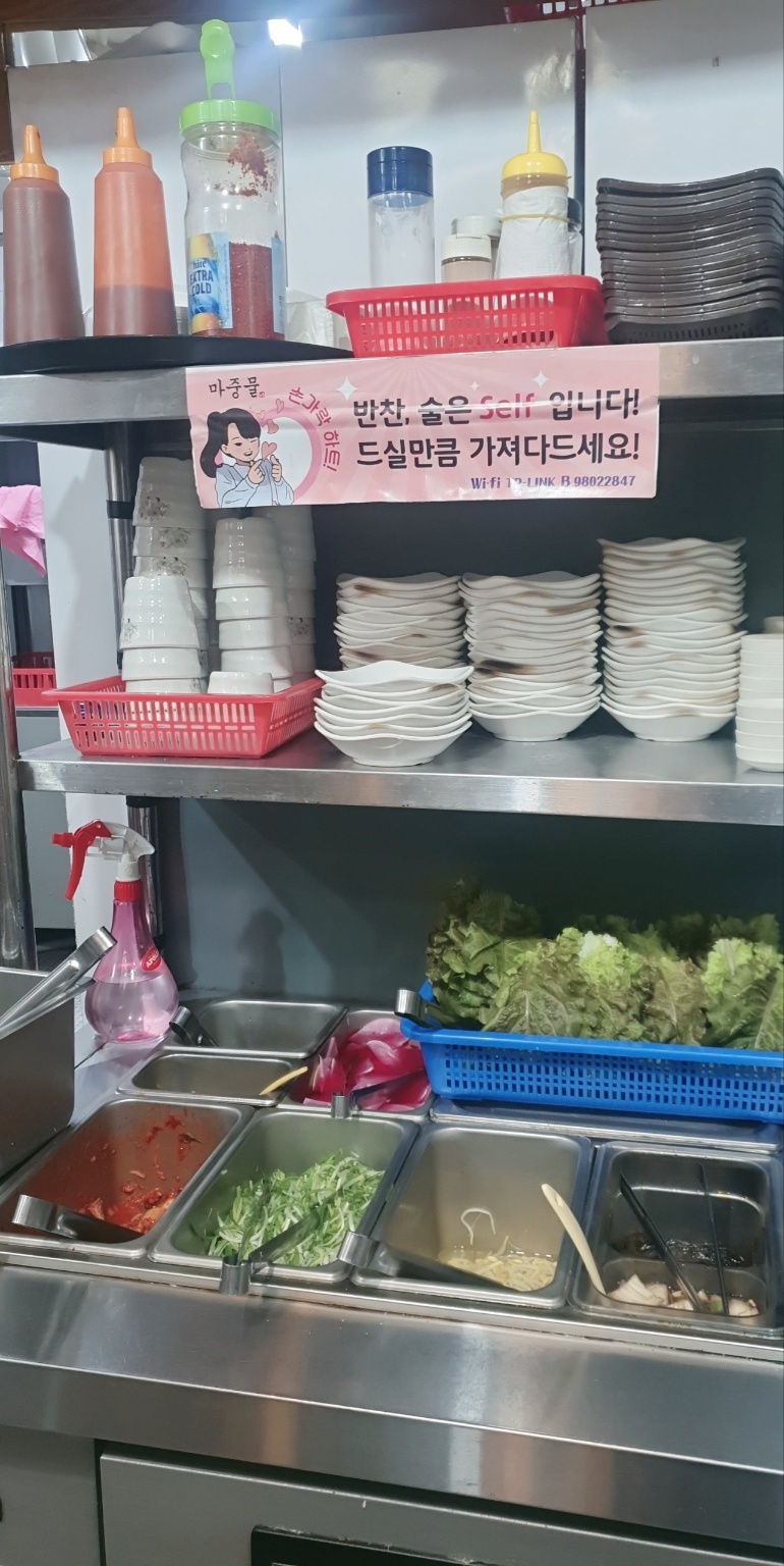 이곳은 기본 반찬부터 술과 음료 모두 셀프로 가져다 드셔야 합니다. 제가 제일 좋아하는 셀프!