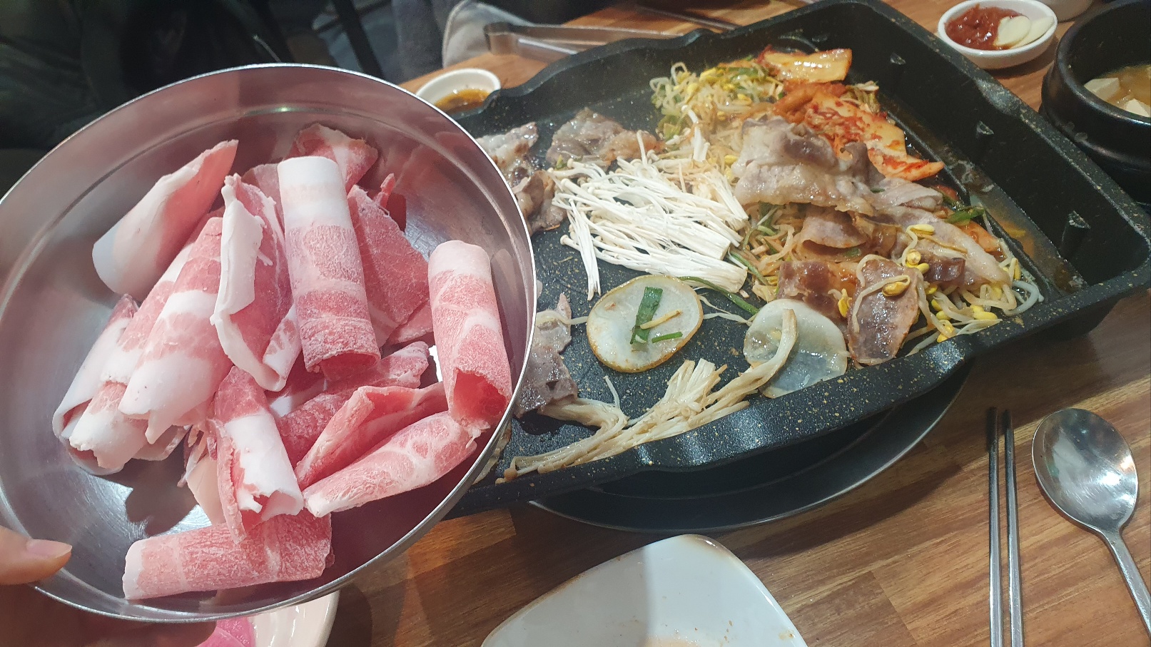 고기를 올려봅니다. 처음에 대패삼겹살 4인분을 주문했는데 배고픈 나머지 고기가 담긴 낭푼을 사진 찍지 못했네요ㅜㅜ