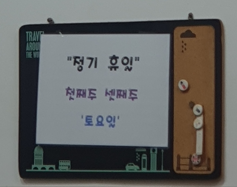 휴무일은 매주 첫째 주와 셋째 주 토요일이니 토요일 방문 시 꼭 확인해서 방문하시도록 바랍니다.