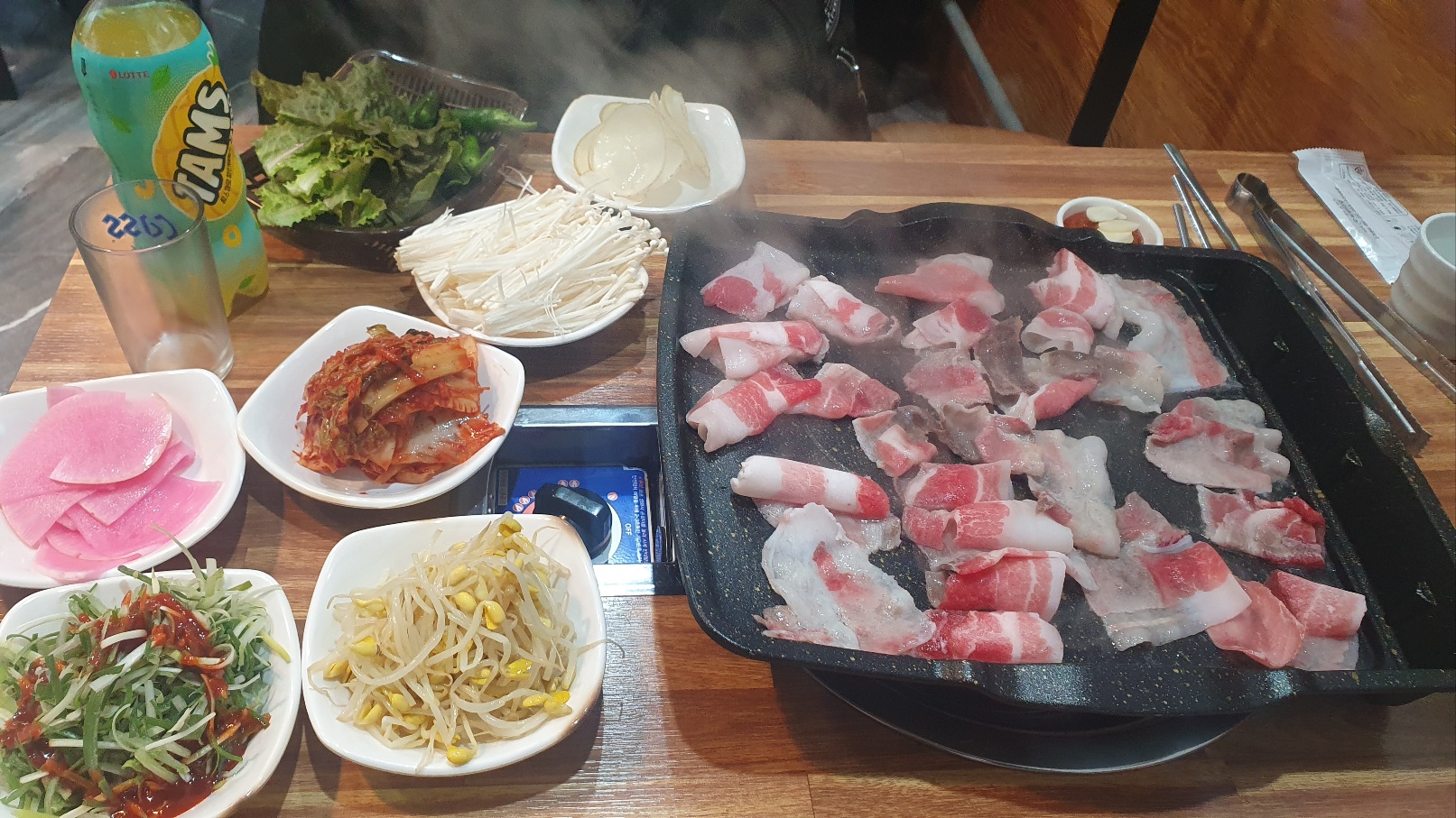 국내산 대패삼겹살 100% 를 사용해 고기맛이 고소하고, 이것저것 마음 놓고 가져다 먹을 수 있는 셀프바가 있어서 너~무 좋은, 찐 단골들만 다닐 것만 같은 반석역 근처 숨은 맛집이랍니다.