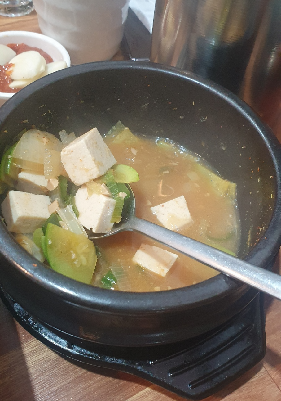된장찌개는 서비스로 한 뚝배기 나온답니다. 공깃밥에 너무나 잘 어울리는 메뉴이지요~