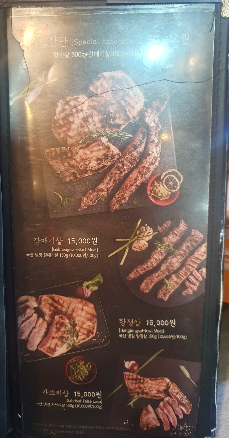 다양한 고기부위와 세트메뉴