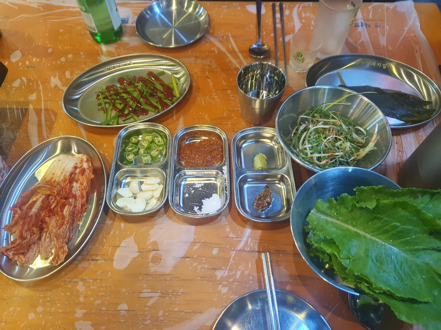 기본 찬으로는 부추와 배추김치, 파절이, 명이나물, 쌈 ~!