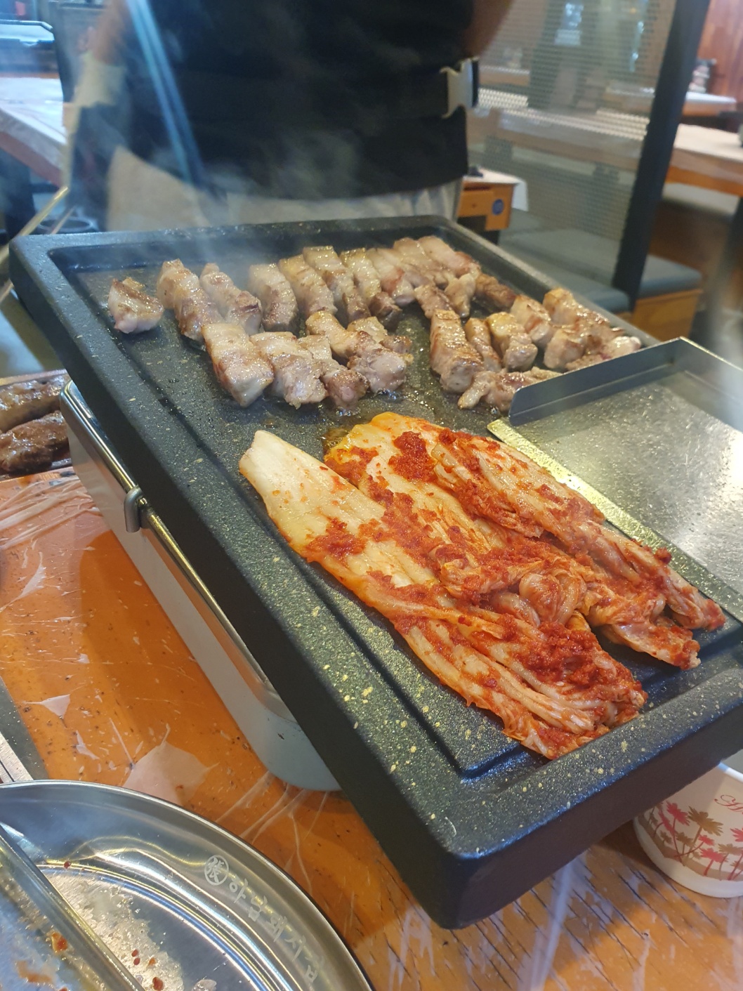 고기를 주문하면 사진 쏙 부스 안에서