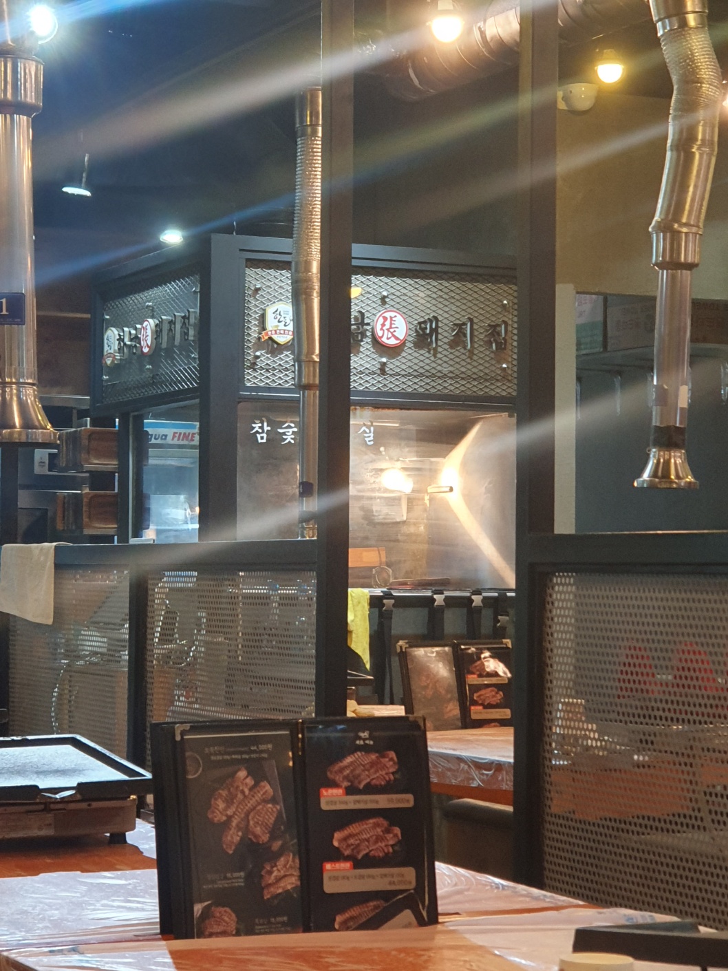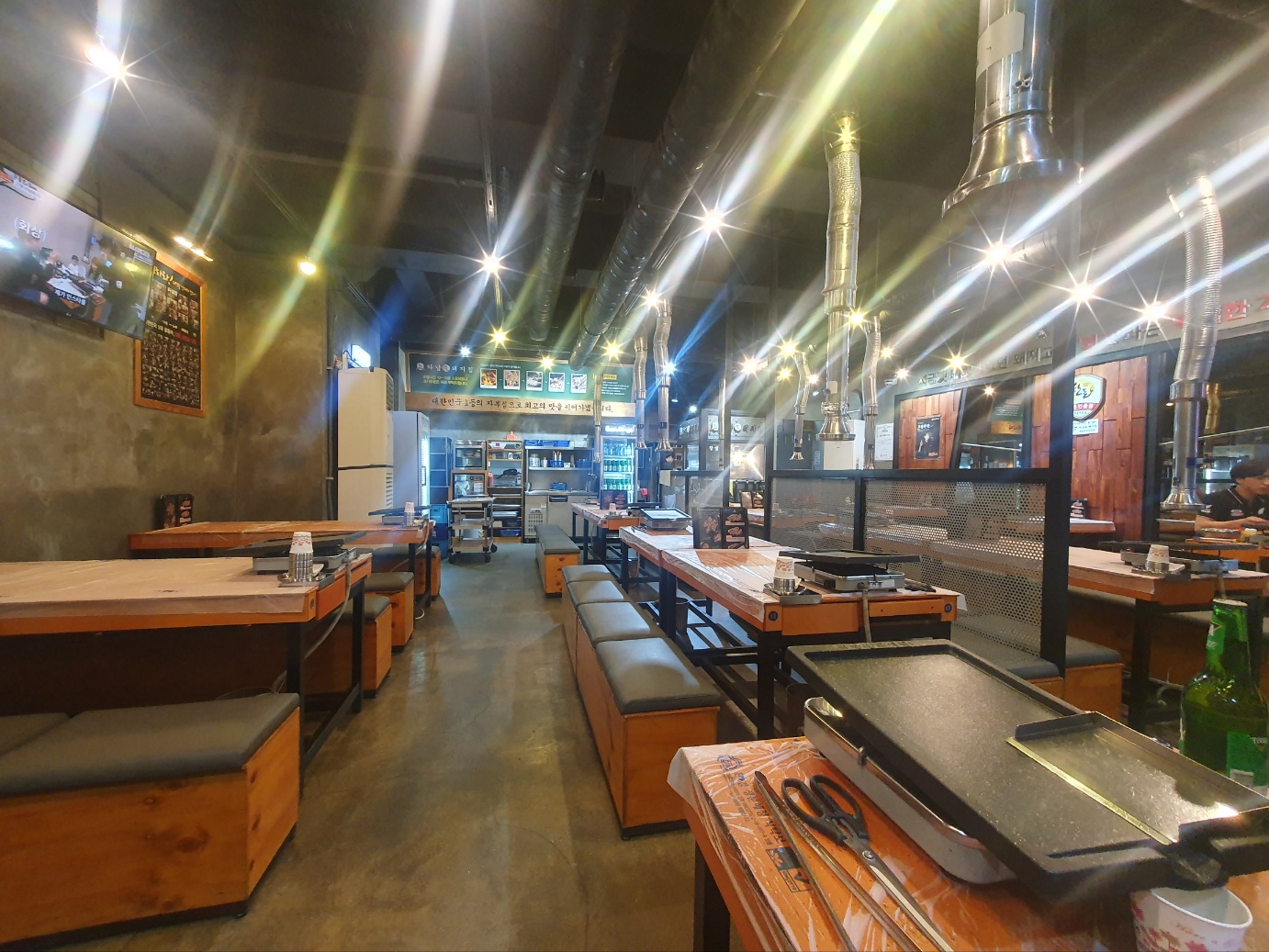 테이블과 불판 들 모두 반짝반짝거리는 게 보이시죠?