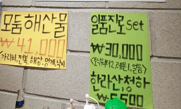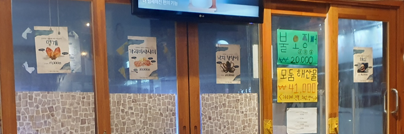 벽면이나 유리창에 메뉴와 가격이 붙어져 있어 무슨 메뉴가 있나~ 구경하는 재미도 있더라고요.