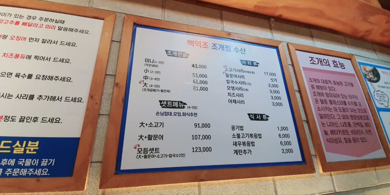 백억조 조개찜 수산 메뉴