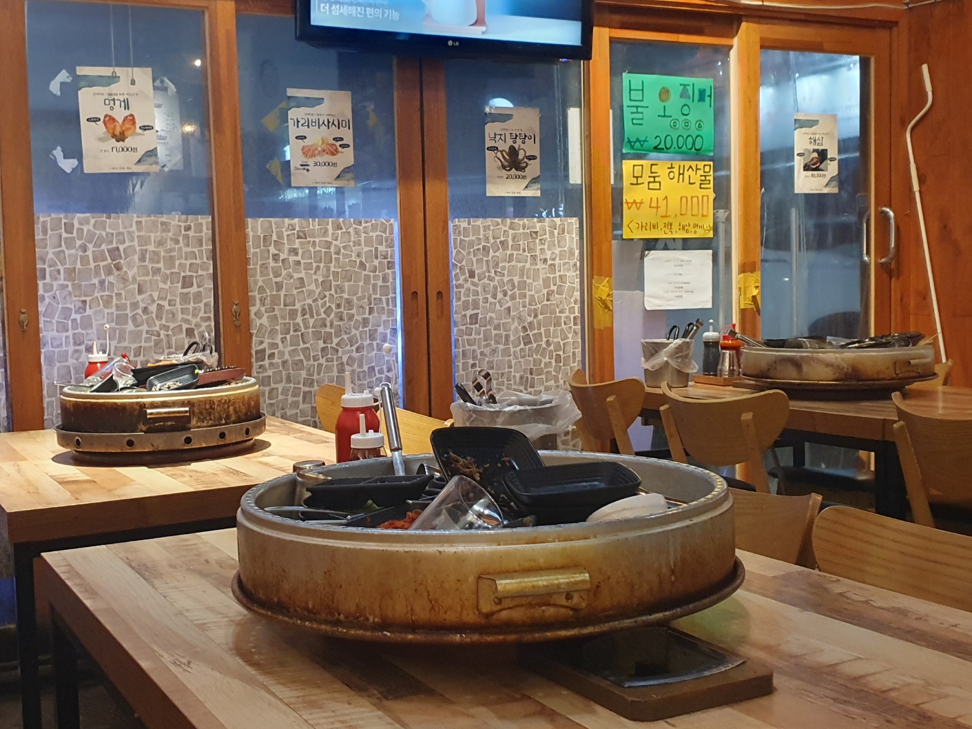 저희는 늦는 밤 야식으로 먹기 위해 방문해서 빈자리들이 많았는데 이미 앞 손님들이 빠져서 정리 중인 테이블들로 가득했답니다.
