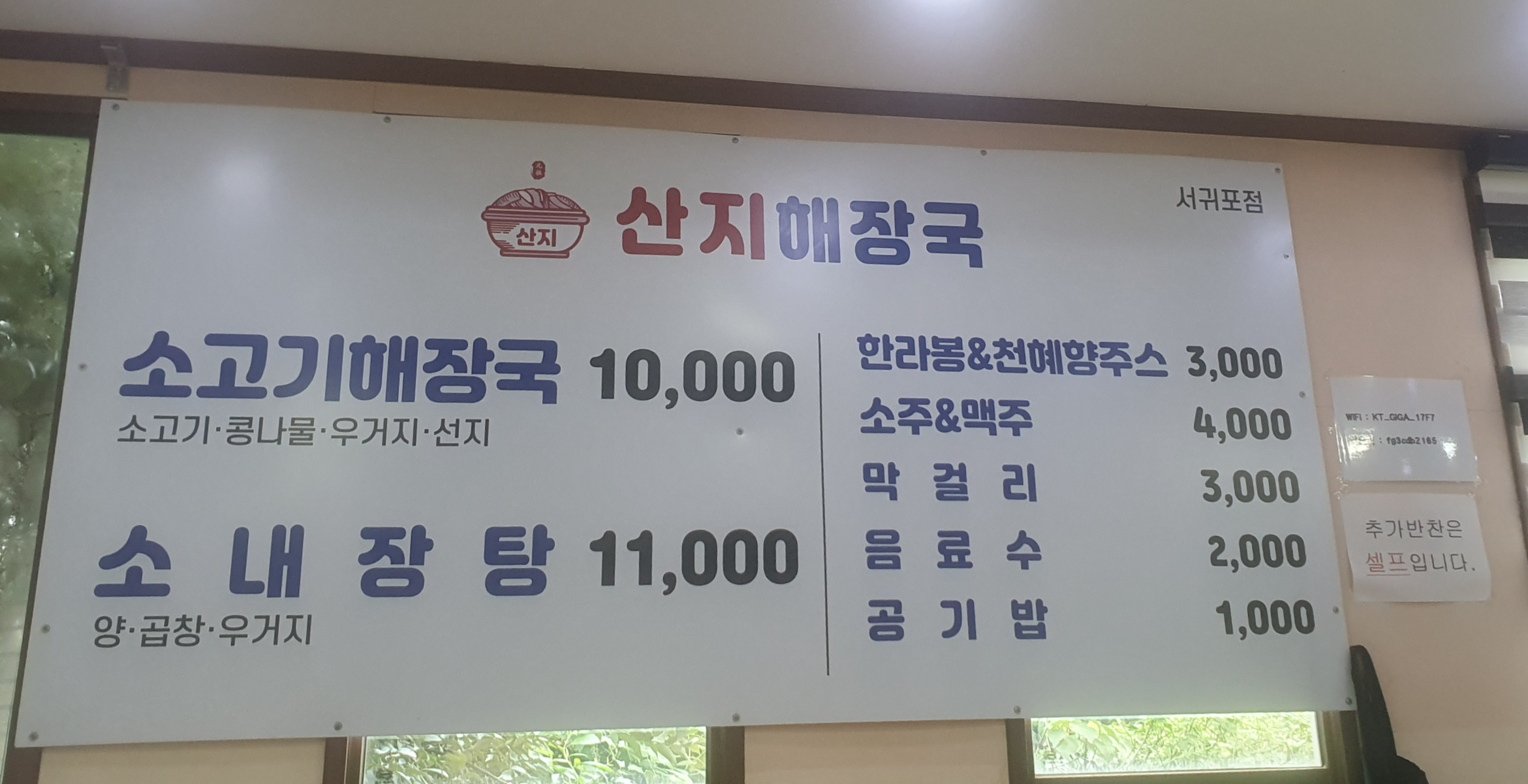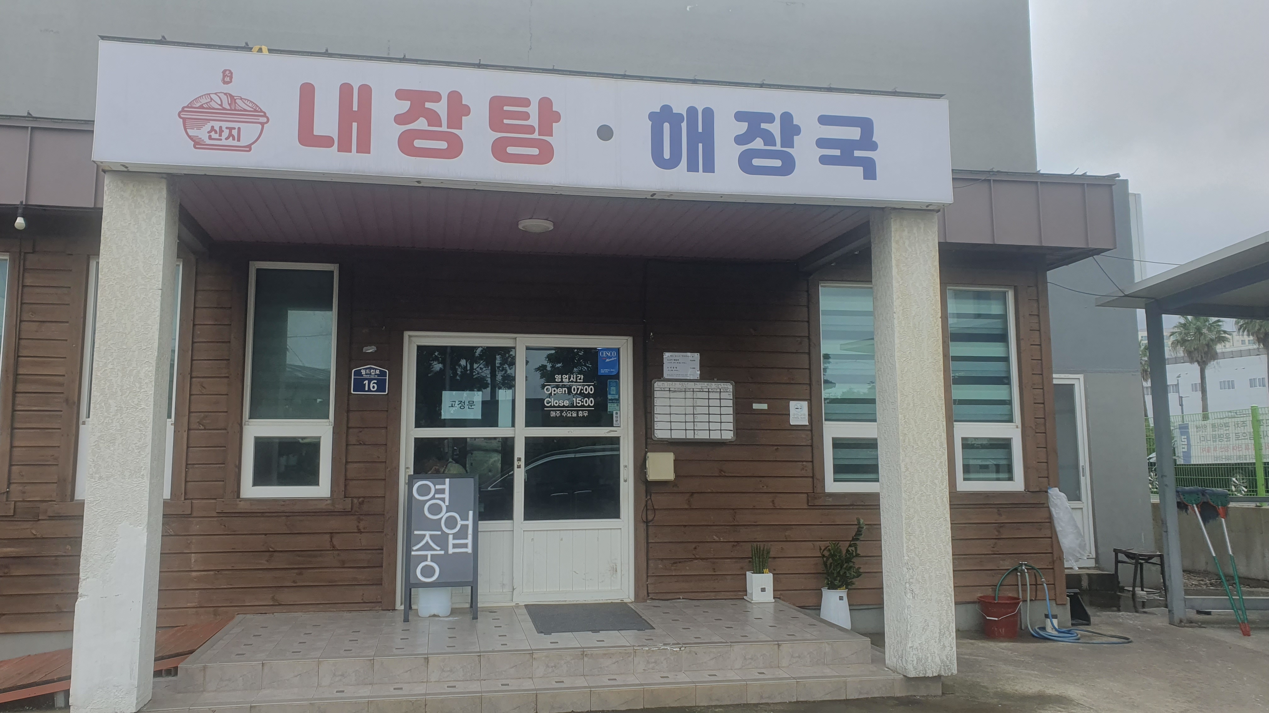 산지해장국은 월드컵경기장 근처 서귀포 이마트 주차장 입구 바로 맞은편에 위치해 있습니다.