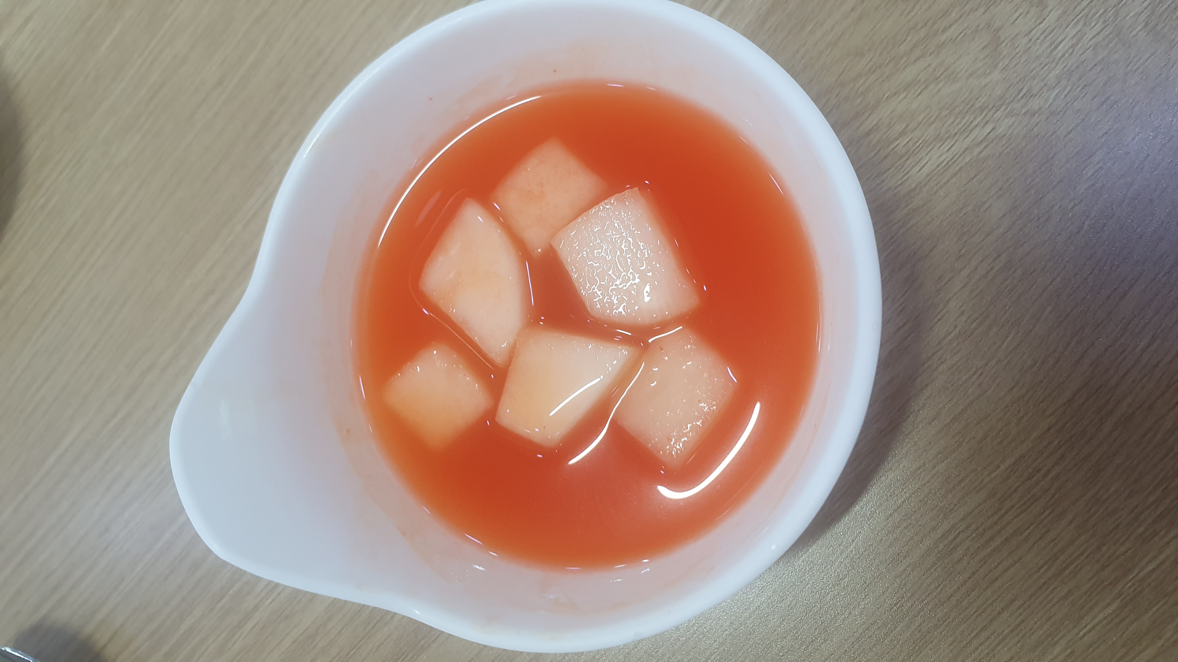 새콤달콤 국물이 있는 무김치는 1인당 1개씩 나오는데 해장국을 먹다가 김칫국물을 한 숟갈 먹으면 얼마나 맛있게요~