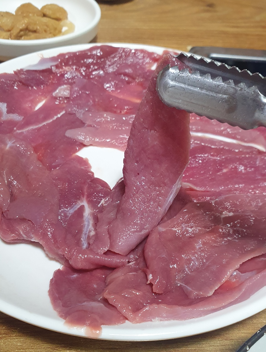 야채 육수가 끓기도 전에 오리 샤브용 고기가 빠르게 나왔습니다. 산지에서 갓 잡은 국내산 생오리의 때깔이란!! 고기의 색이 꽃잎을 편 것 마냥 너무나도 예쁩니다.