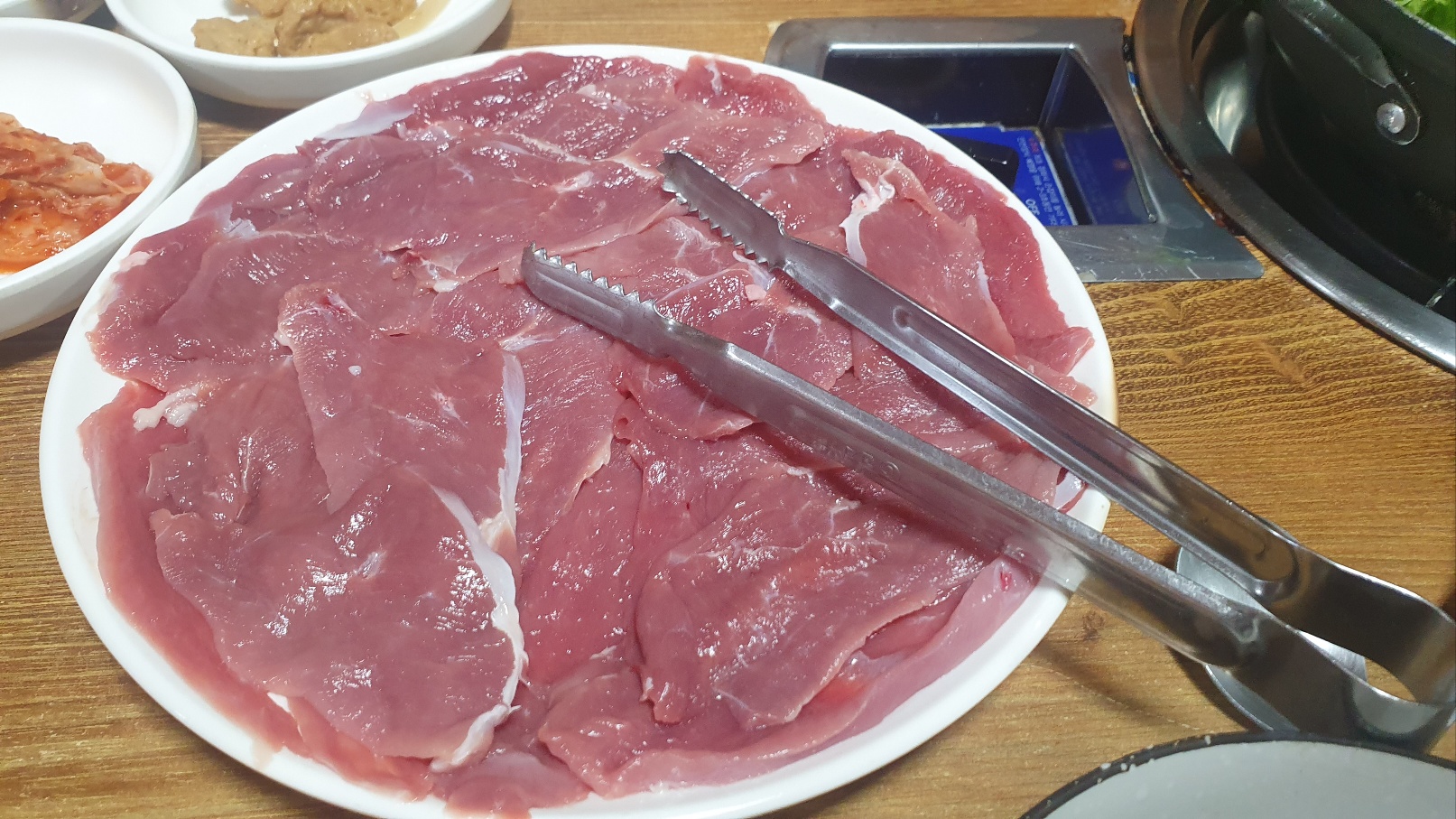 야채 육수가 끓기도 전에 오리 샤브용 고기가 빠르게 나왔습니다. 산지에서 갓 잡은 국내산 생오리의 때깔이란!! 고기의 색이 꽃잎을 편 것 마냥 너무나도 예쁩니다.