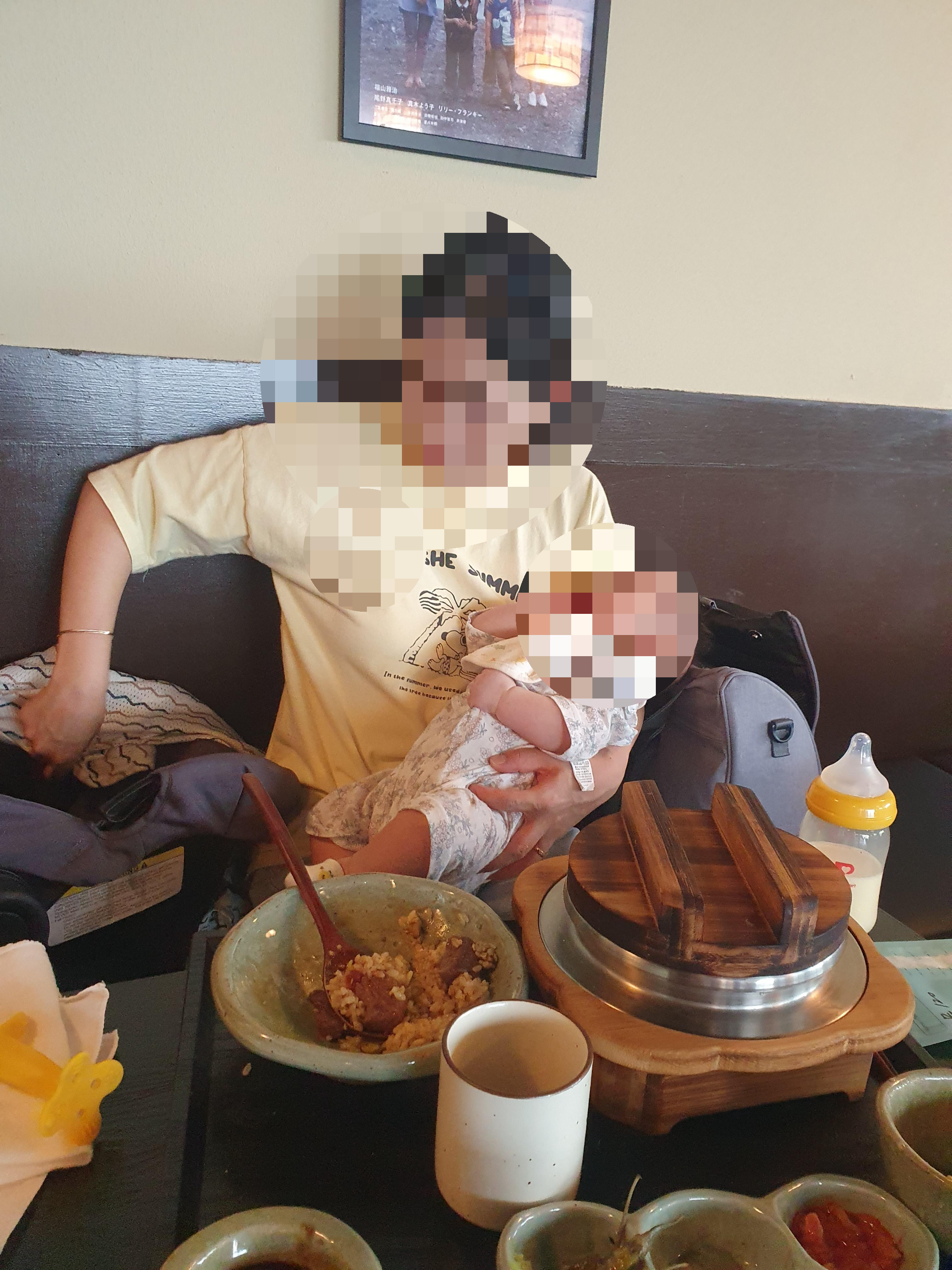 사장님께서 자리가 괜찮을지 걱정해 주시며 친절하게 바라봐 주셨답니다. 친구와 아기는 소중하므로 모자이크 허락을 받고 사진을 투척!!