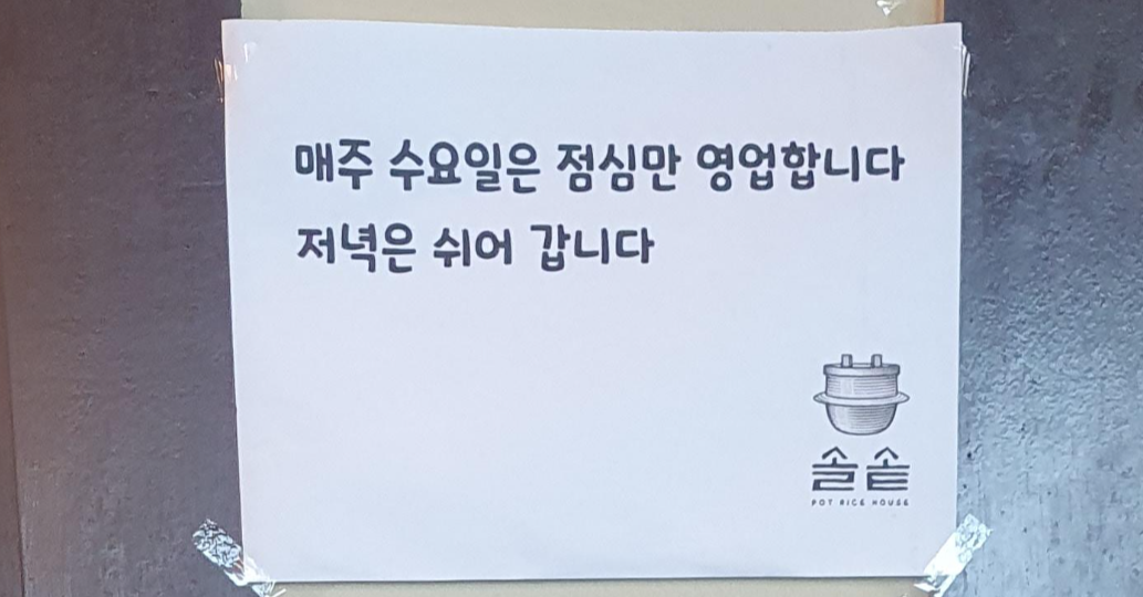 수요일은 오후 3시까지만 문을 연다니 꼭 확인 후 방문하시기 바랍니다.