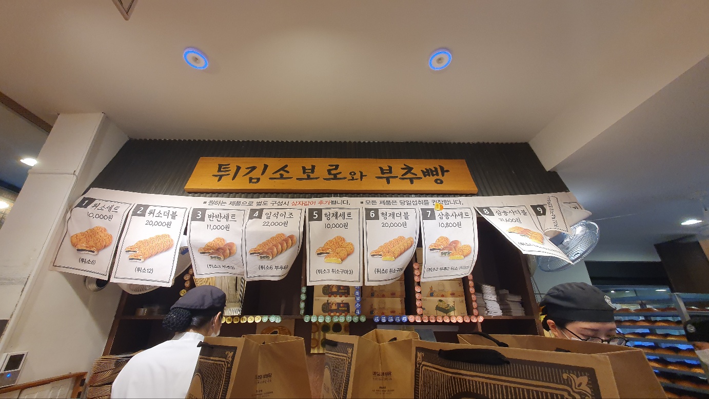 추석을 앞둔 요즘이라 선물하기 좋은 다양한 구성의 선물세트들도 진열되어 있었습니다. 구매하고 싶은 욕구가 많았으나 들고가는게 일이기에 꾹 참고 지나갔네요. 꼭 튀김소보로만 찾지 않아도 다양한 제품이 있으니 다음에는 골고루 보고 구매해 보아야겠습니다. 가격도 일반 빵집보다