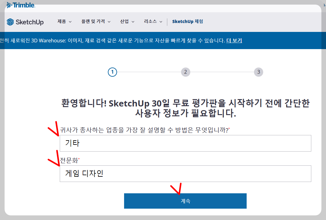 스케치업 체험판 설치방법