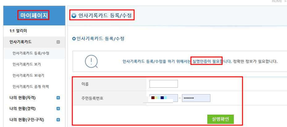 마이페이지 이동 후 실명확인하기