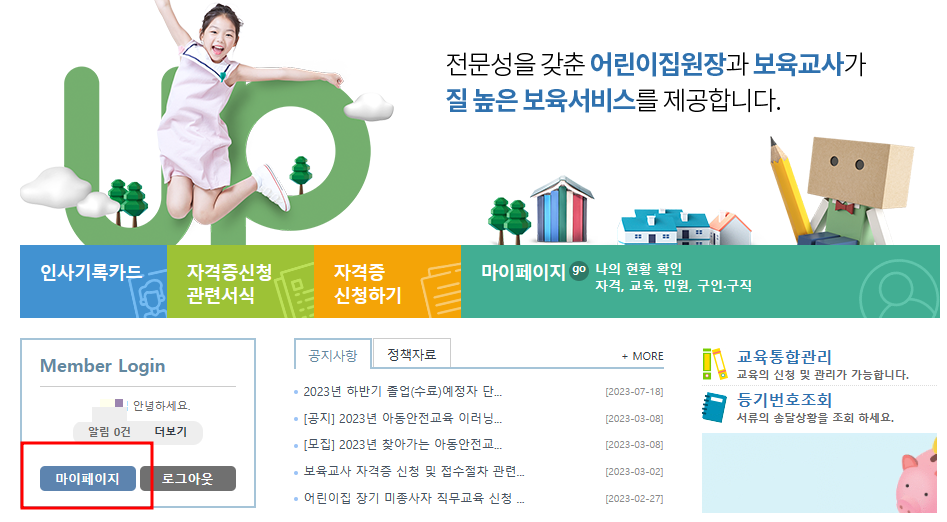 보육교직원 통합정보 사이트 이동/로그인하기