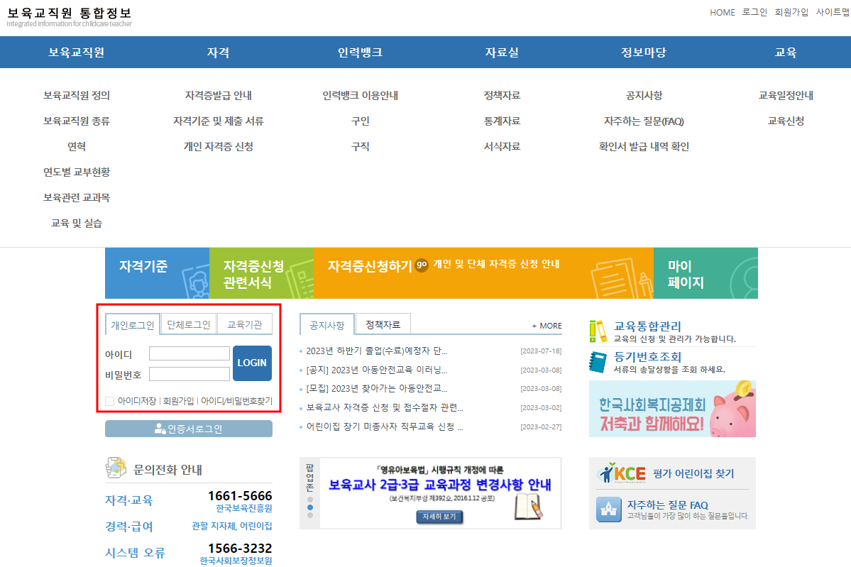 보육교직원 통합정보 (childcare.go.kr)