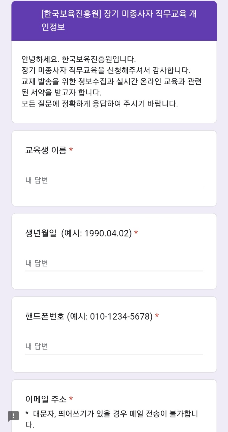 장기미종사자직무교육을 신청해 주셔서 진심으로 감사드립니다.