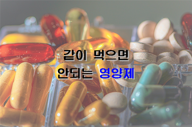 영양제 효과를 보기 위해서는 먹어야 하는 시간과 용량의 복용 방법이 다 다른데요, 하루 4~5개의 영양제를 드시는 분들에게는 시간에 맞추어 먹는 것이 결코 쉽다고 할 수는 없습니다. 이런 이유로 여러 개의 영양제를 한 번에 먹는 모습을 흔치 않게 볼 수 있습니다. 함께 먹어도 되는 약이 있는 반면 상성이 맞지 않는 영양제를 함께 복용하게 되면 영양소가 제대로 흡수되지 않거나 우리 몸에 악영향을 끼칠 수 있습니다. 함께 먹으면 탈이 나는 음식이 있듯이 영양제도 같이 먹으면 안 되는 영양제가 있습니다.