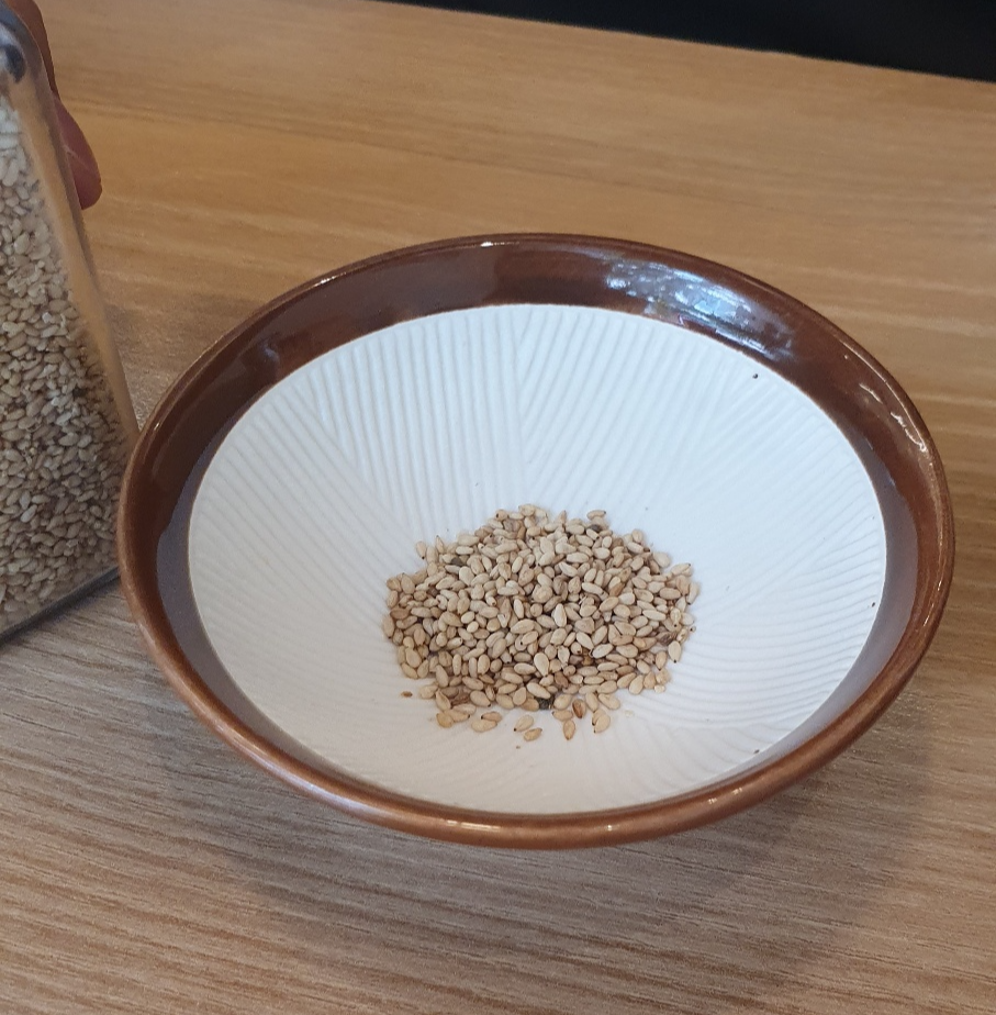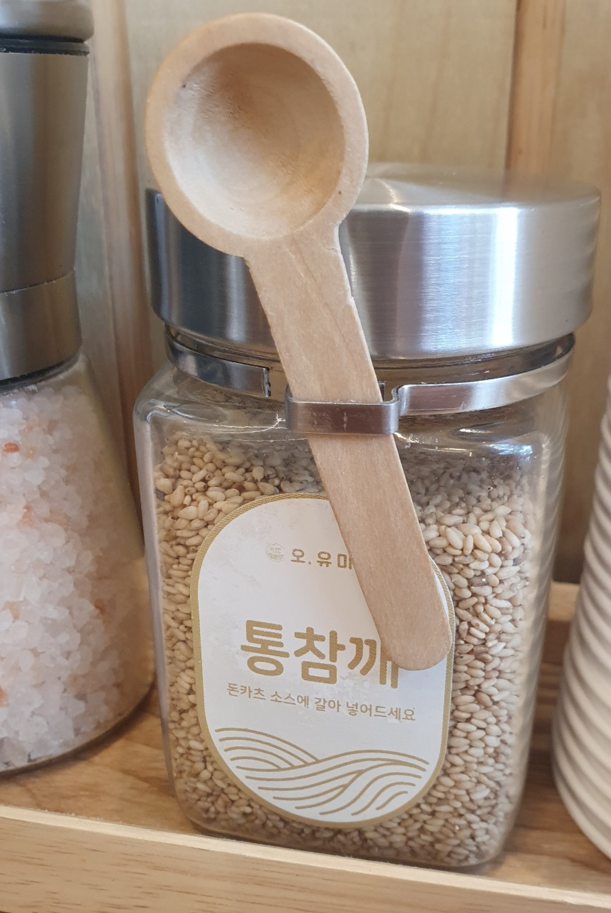돈카츠 소스에 통참깨를 갈아 넣어 먹으면 풍부한 고소함을 느끼실 수 있습니다.
