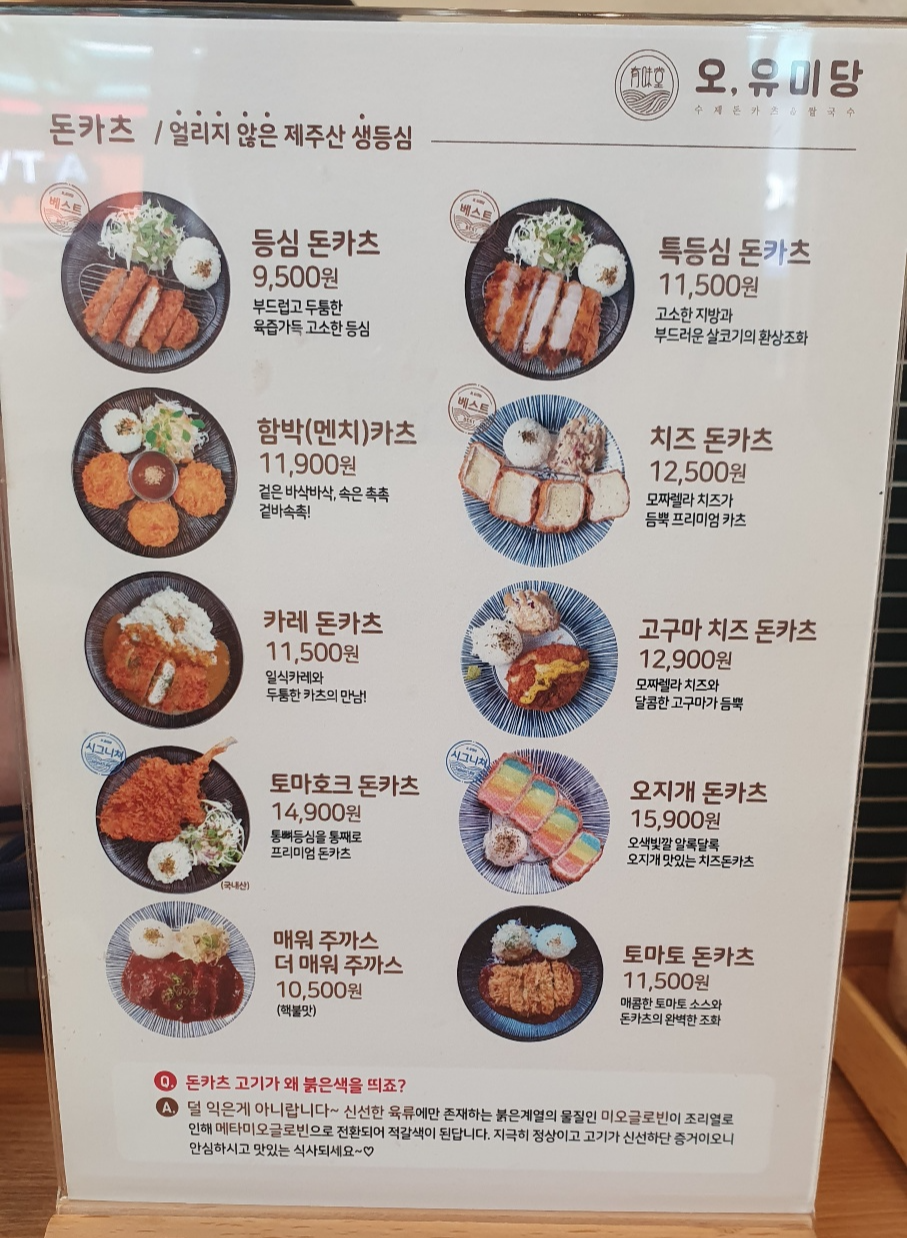 9,500원부터 115,900원까지의 가격으로 다양한 돈카츠 메뉴가 있는데요, 토마호크 돈카츠와 오지개 돈카츠, 매워 주까스가 눈에 띄게 보입니다.
