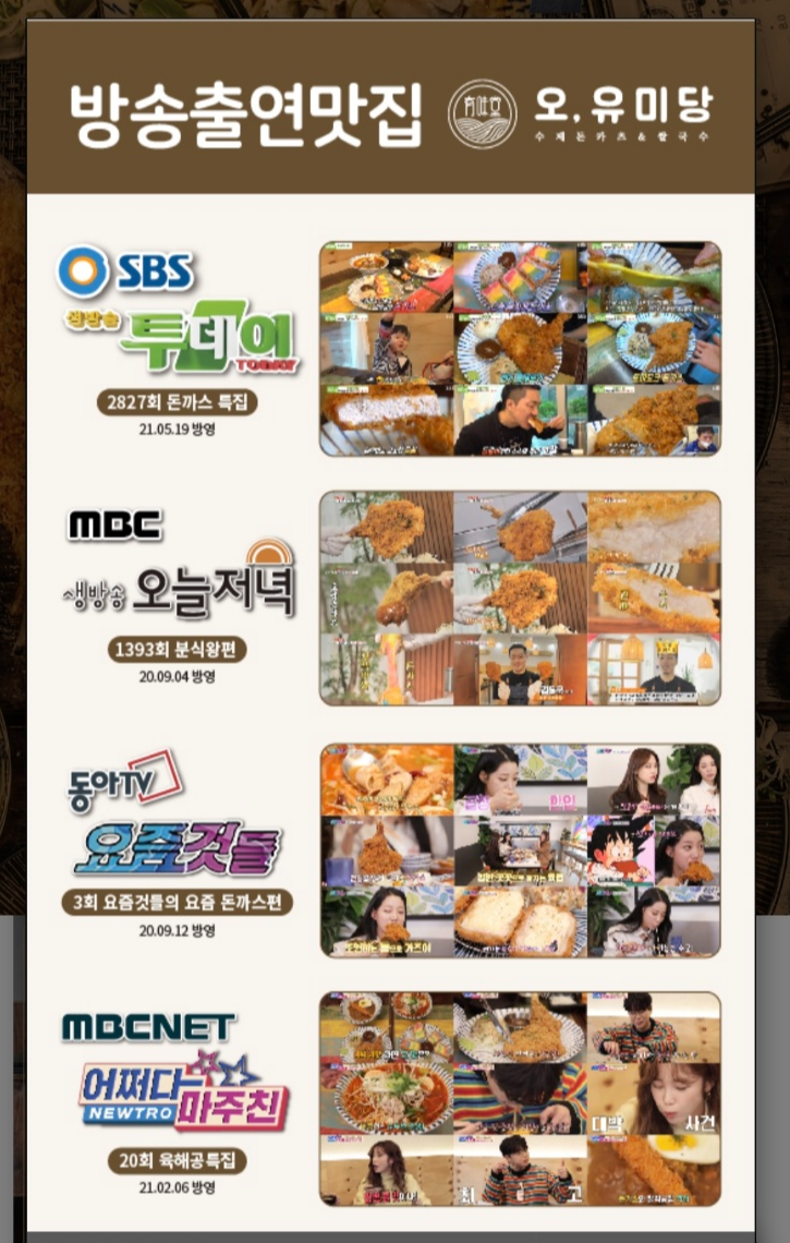 참고로 오유미당은 각종 TV프로그램에도 소개가 되었고 수상 경력도 있는 믿어도 될만한 그럼 맛집이랍니다.