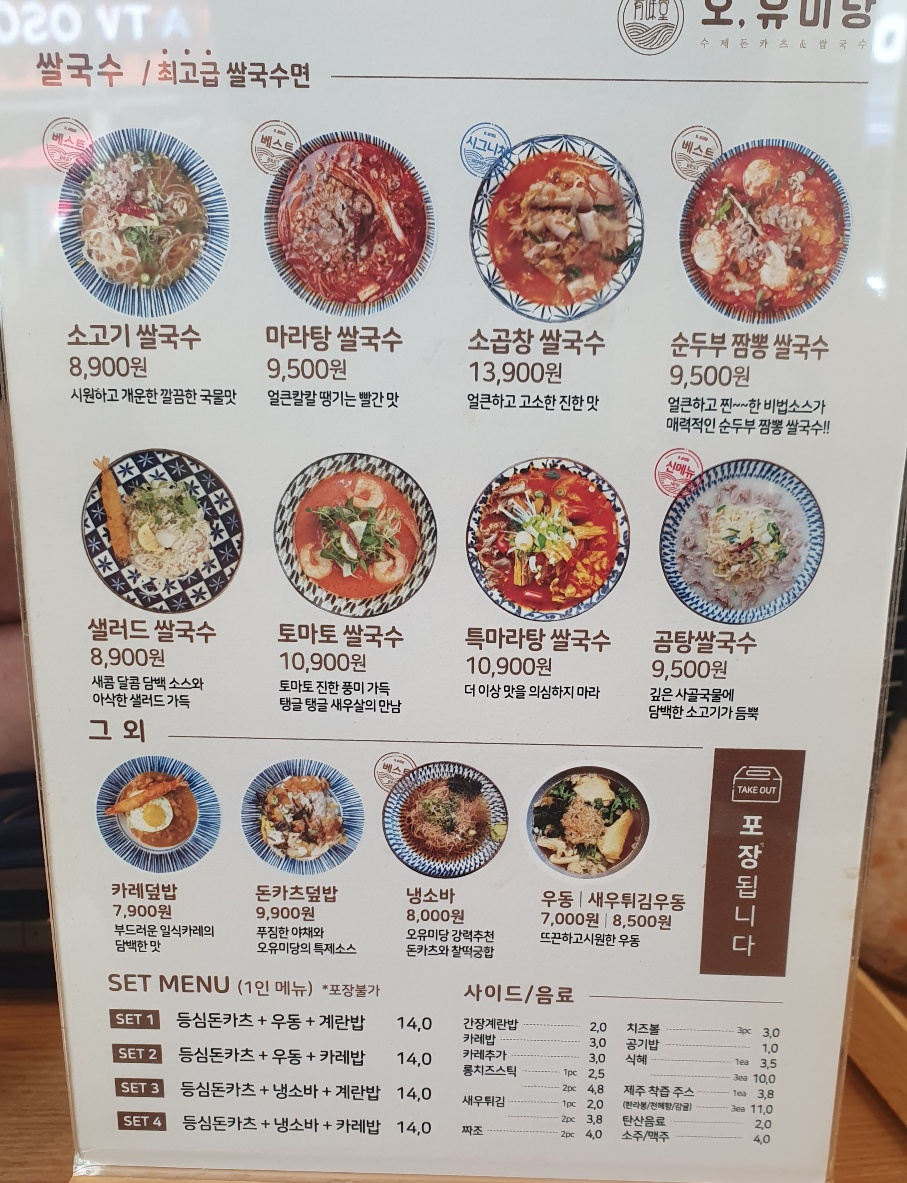 저희는 돈카츠종류 한 개, 쌀국수 종류 한 개를 선택하기로 했는데 먹음직스러운 음식 사진에 무얼 골라야 할지 한참 고민을 하다가 특등심돈카츠와 마라탕 쌀국수를 선택!