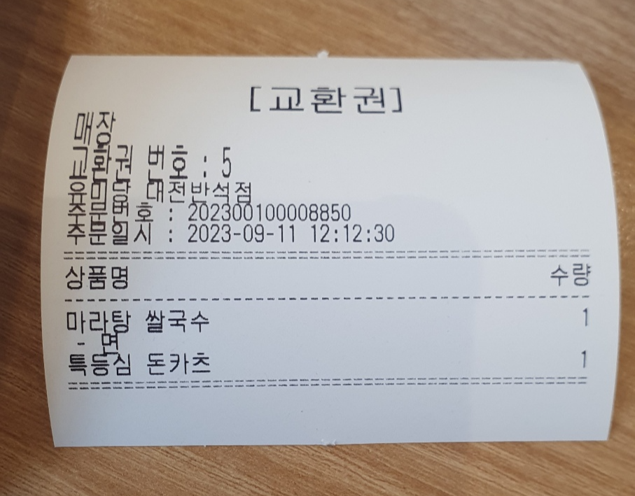 입구 왼편에 기계가 놓여 있는데요, 음식을 선택하고 결제까지 마무리하면 영수증과 교환권이 나옵니다.