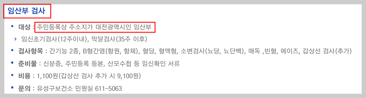 *임신 후 산전검사 시에는 주민등록상 주소지가 대전광역시인 임산부