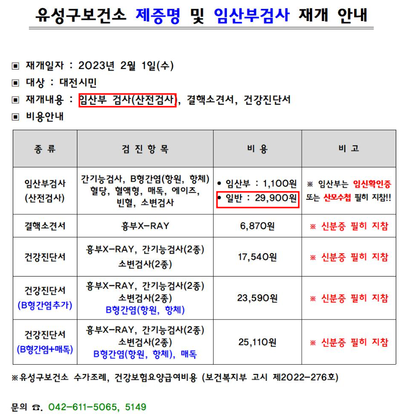 대전 유성구 보건소 '임신전 산전검사' 후기