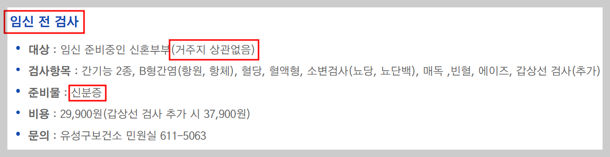 대전 유성구 보건소 '임신전 산전검사' 후기