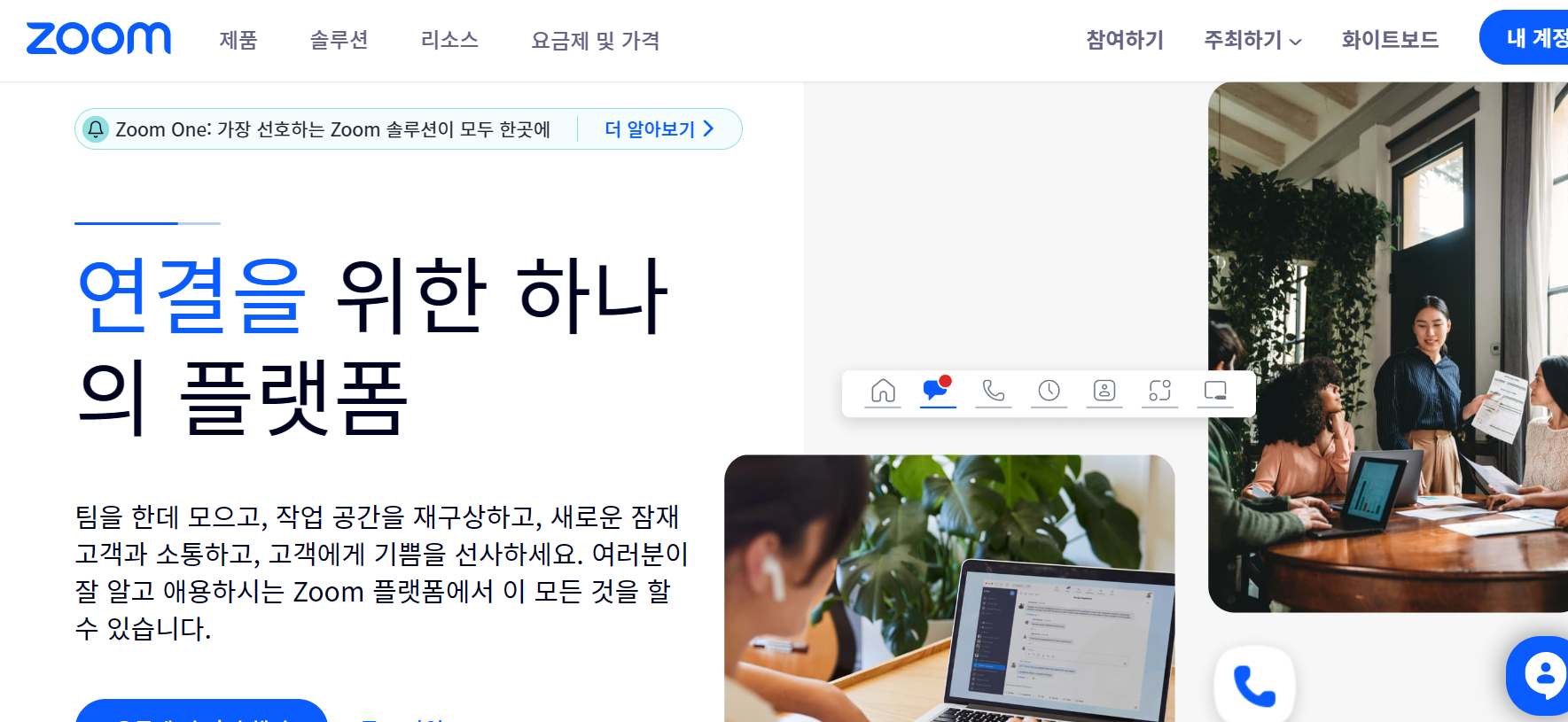 비디오 미팅, 팀 채팅, VoIP 전화, 웹 세미나, 화이트보드, 컨텍 센터 및 이벤트를 포함한 Zoom의 신뢰할 수 있는 협업 도구를 사용하여 워크플로를 현대화하세요.