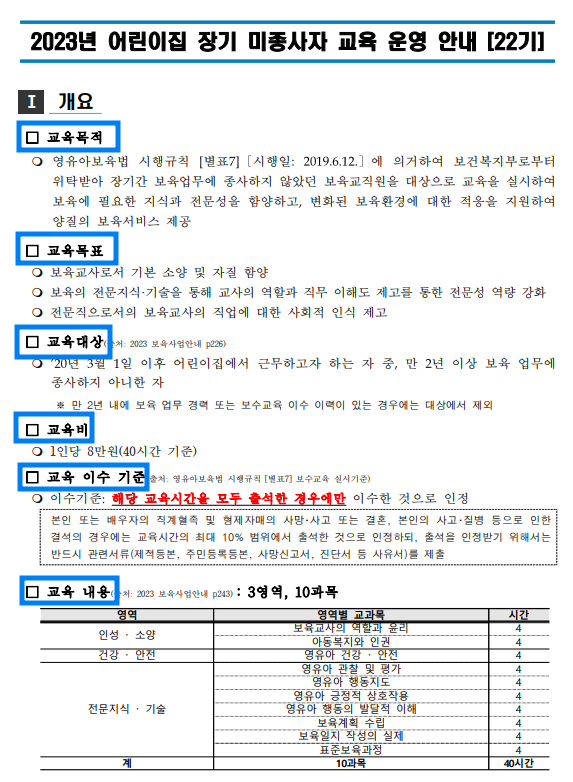 2023년 어린이집 장기미종사자직무교육 온라인교육 OT자료