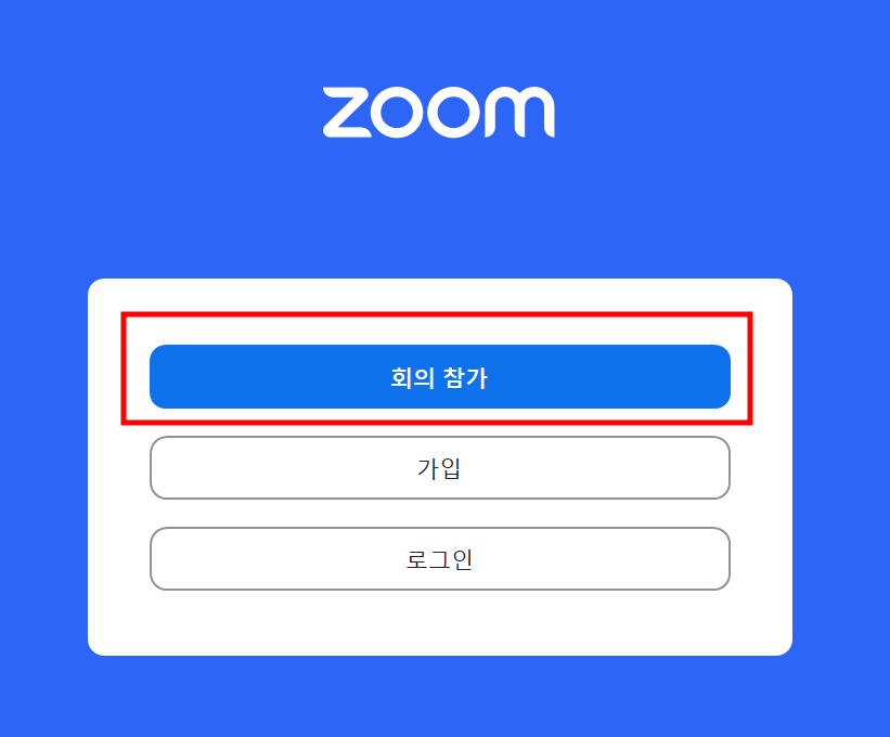 다운로드된 줌(ZOOM) 프로그램 실행 후 '회의참가'를 클릭합니다.