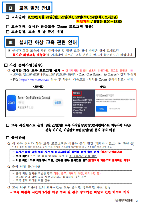 교육 참여 전 필독안내글이기에 첨부파일을 반드시 정독해 달라는 요청이 적혀있어 꼼꼼히 읽어 보았답니다.