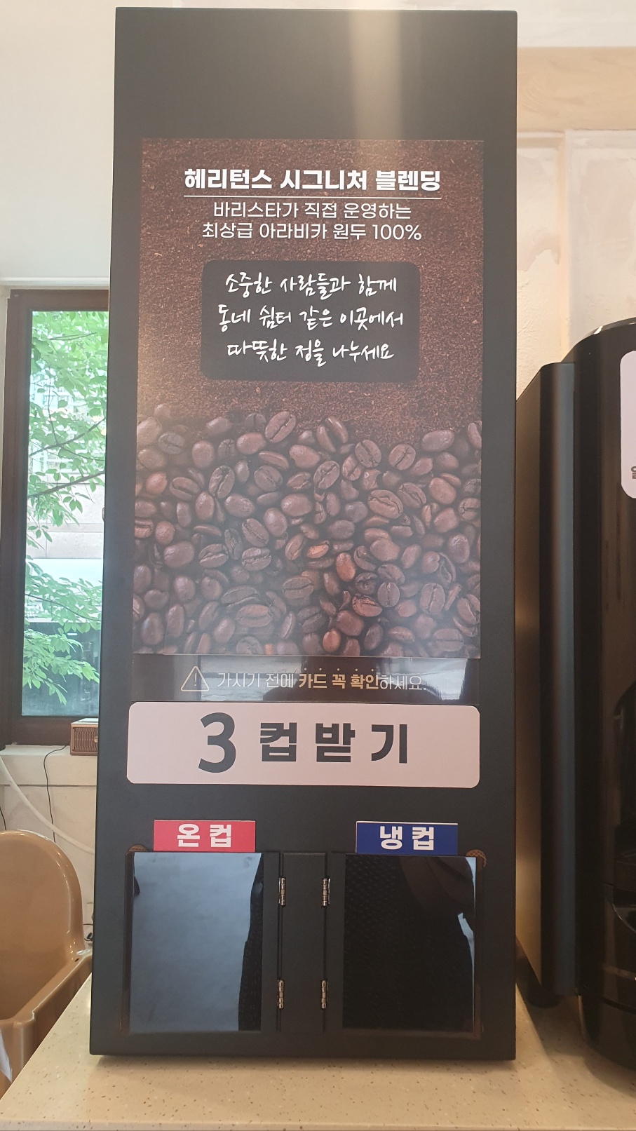 집 근처에 가성비 좋고 공간도 편안한 무인카페가 생겨 기쁘기 그지없던 날이었답니다. 거주하는 곳에 '헤리턴스 카페'가 있다면 가벼운 마음으로 방문해 보시는 것도 좋을 것 같습니다. 감사합니다.