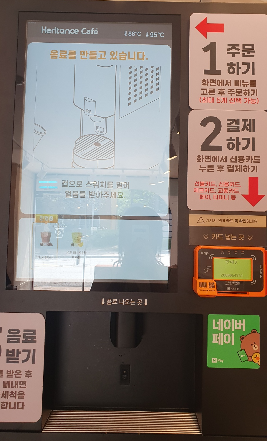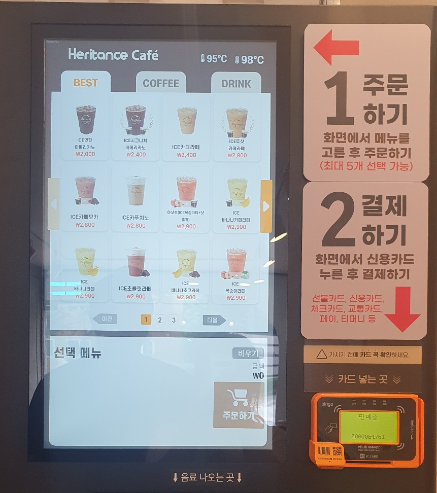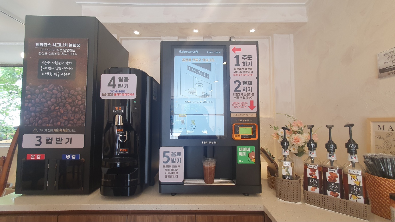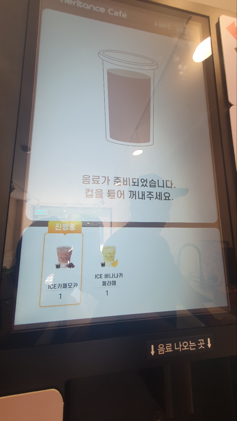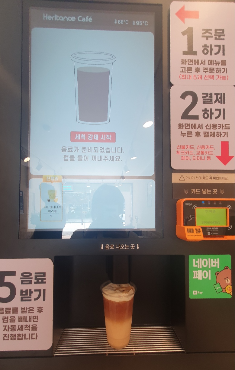 위 사진의 기계에서 주문을 하고 컵을 받고 음료를 받을 수 있는데요, 사용하는 내내 "요즘 기계 진짜 좋아졌다~~~!"를 연신 외치게 되었답니다.