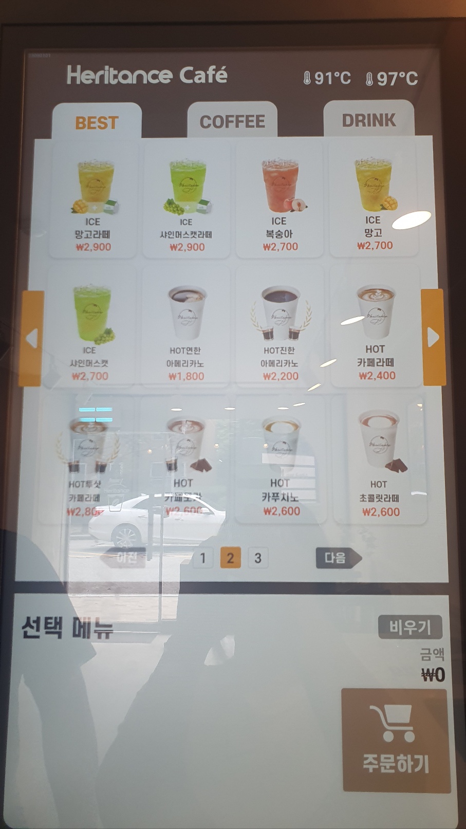 주문하기 버튼을 클릭한 후 화면에서 메뉴를 고릅니다.