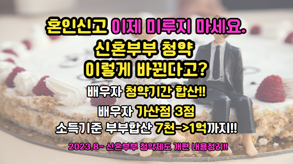 이번 포스팅에서는 혼인신고를 미루는 이유에 대해 알아보고 2023년부터 신혼부부들을 위해 청약 정책이 개편되었다는 희소식에 대해 정리해 보려합니다.