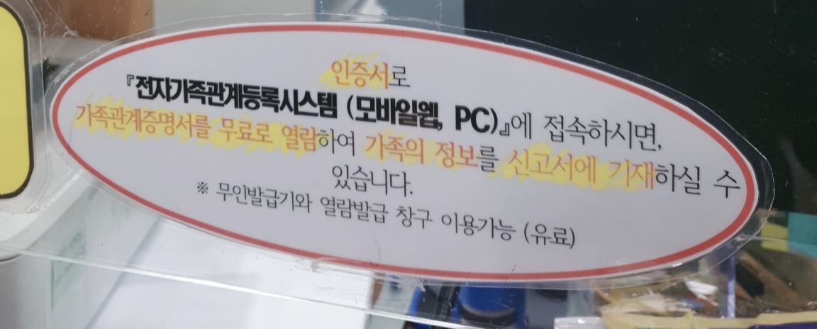 전자가족관계등록시스템(모바일/PC) 가족관계증명서 무료열람 가능 합니다.