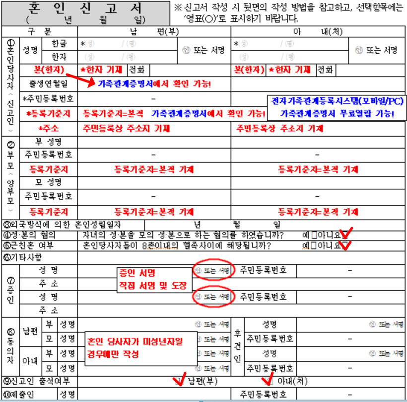 꼭 필요한 혼인신고 증인 2인 정보기재 및 직접 서명!!