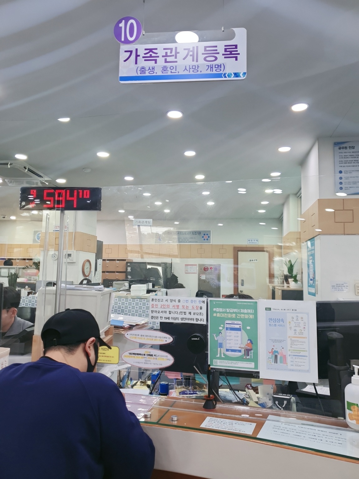 혼인신고는 10번 가족관계등록 창구 한 곳 있었답니다.