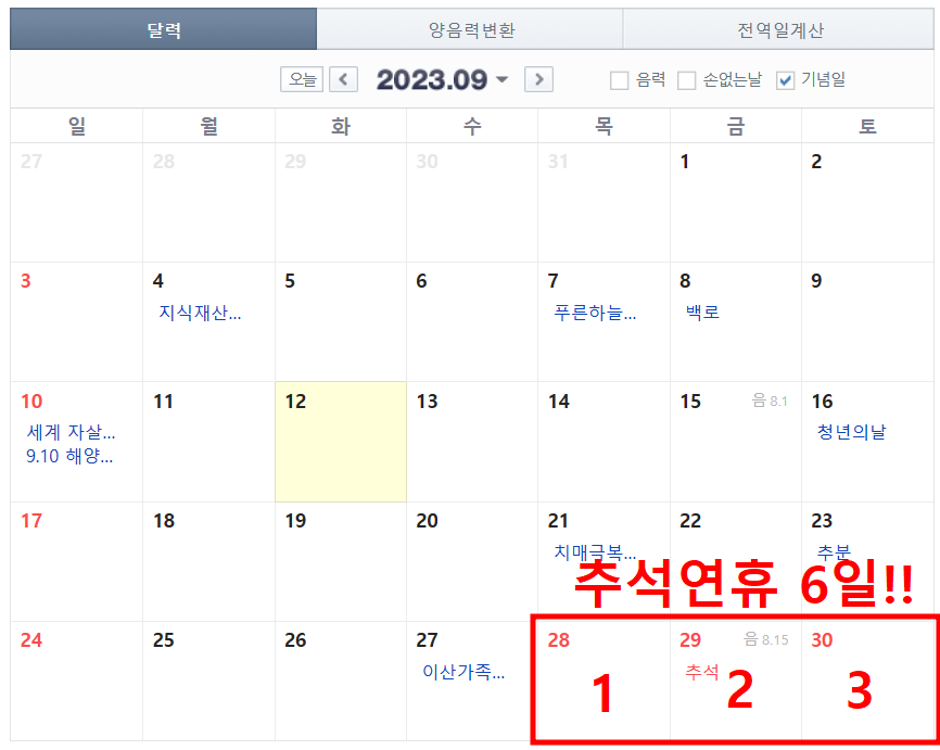 2023 추석 연휴기간