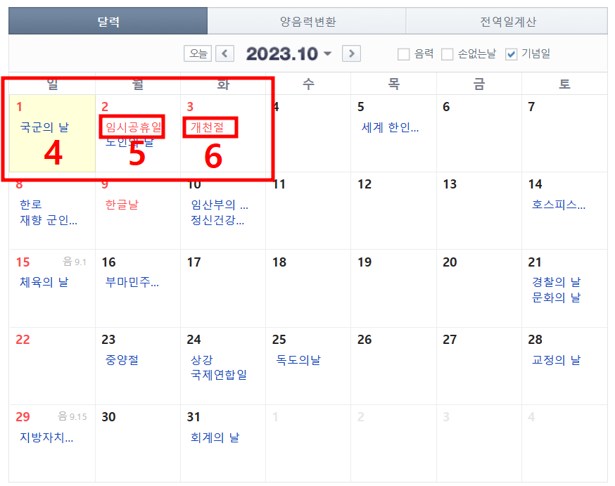 임시공휴일, 개천철 포함하여 총 6일!