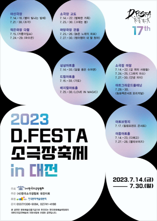 이번 축제의 프로듀서를 맡은 나일봉씨는 "2023D.FESTA 소극장축제는 연과 공연예술을 향한 연극인의 열정과 에너지들이 소극장 무대를 불태우며 한국의 연극 예술혼을 이어가고 있다"며 "연극인의 축제를 넘어, 자신들의 꿈을 이루어가는 삶의 더 큰 자리가 되길 바란다"라고 말했습니다.